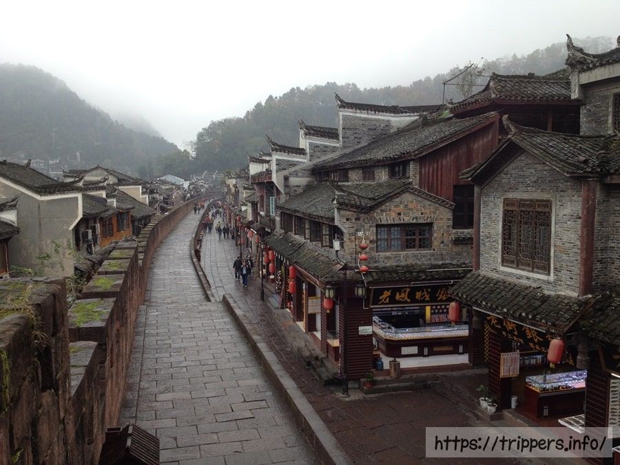 東門城楼から撮った東正街です。黒い瓦と白壁が印象的で古風でした。