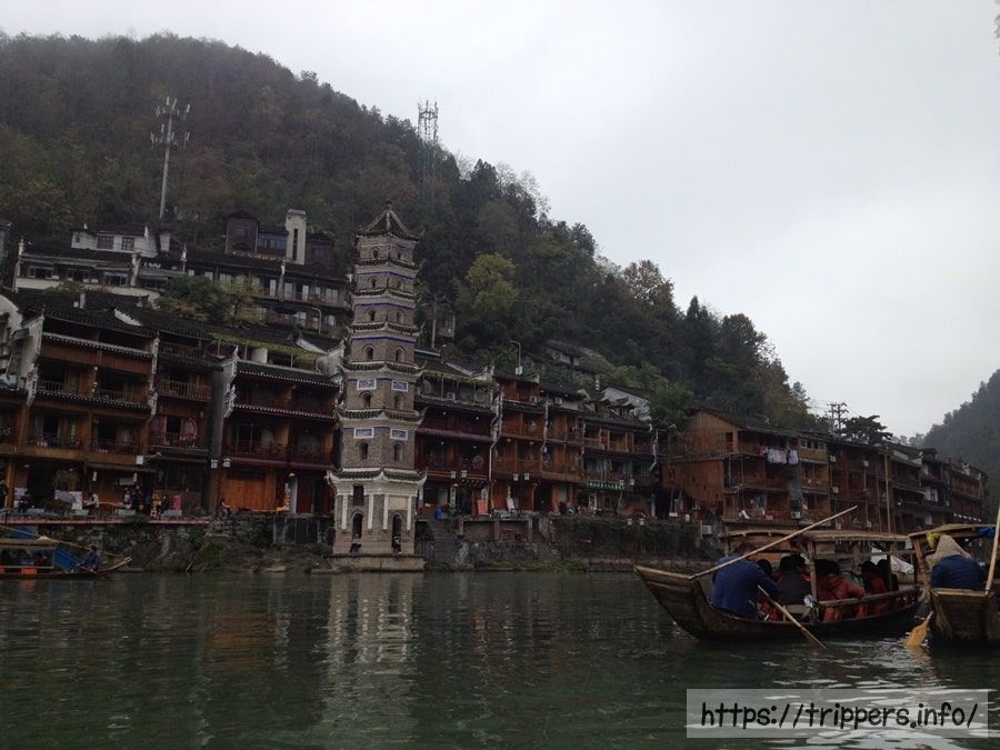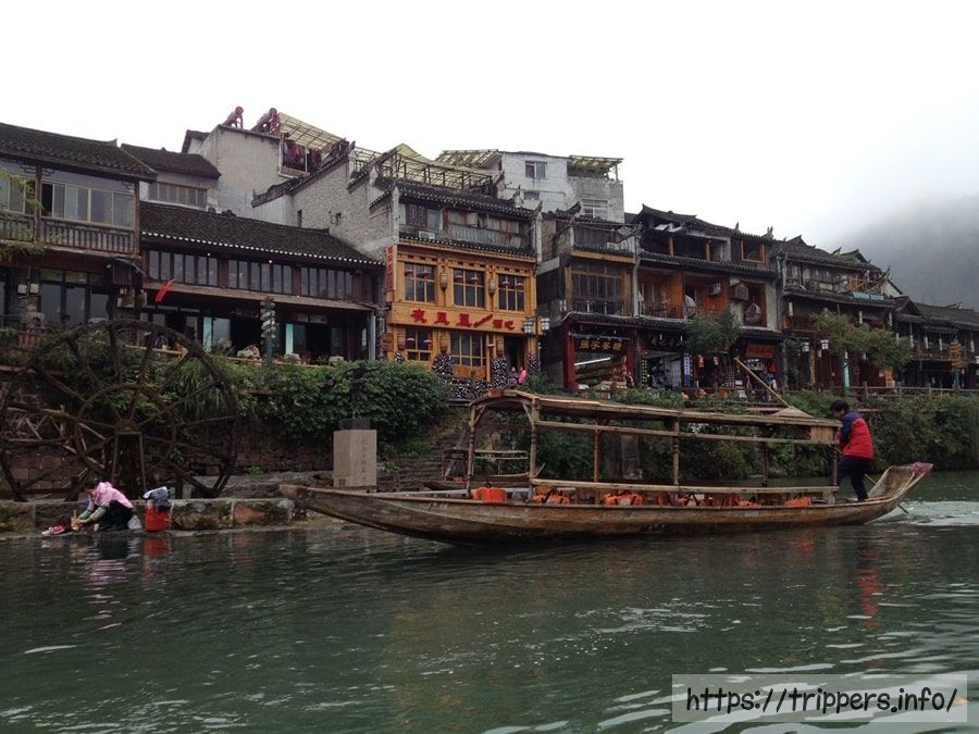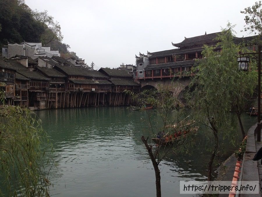 北門城楼から鳳凰古城の外へ出ると沱江遊覧する乗り場がありました。ここのエリアもまだ鳳凰古城入場チケットが必要みたいです。
