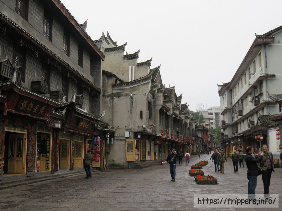 虹橋と吊脚楼。吊脚楼は川に杭を打ち、その上に地形に合わせて住居を構える中国西南地域の古い建築様式なんだとか。独特で趣を感じますね。腐る事はないのだろうか。地震の多い日本だと活用できなさそう。