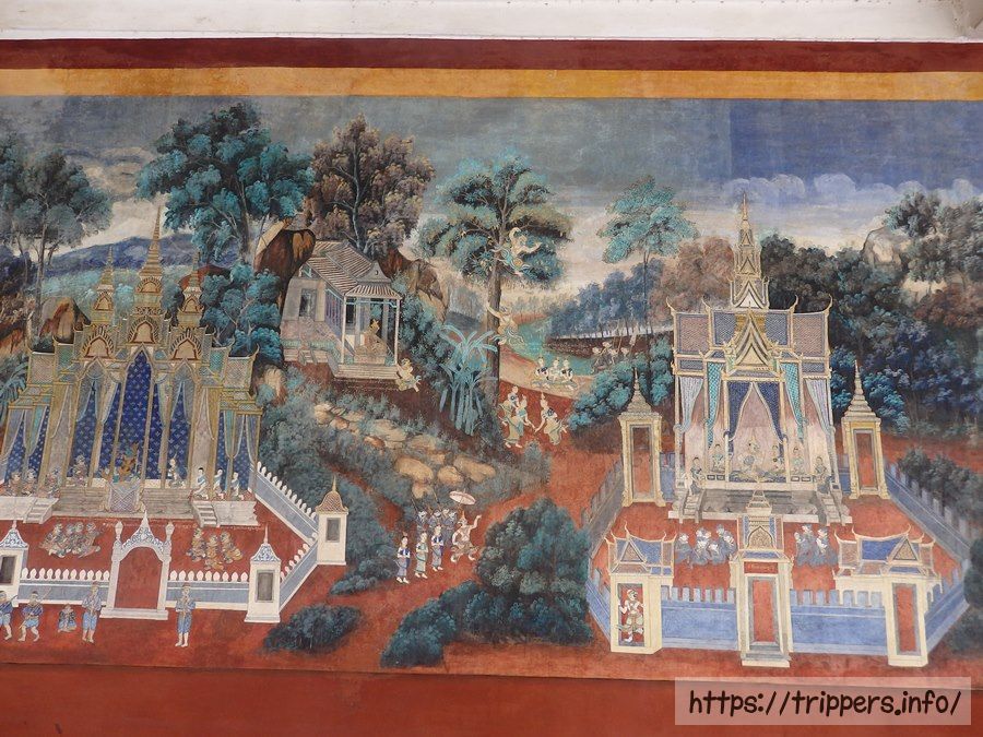 王宮からシルバーパゴダへ移動すると長い壁画回廊があります。
