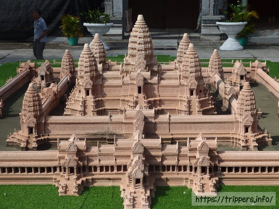 シルバーパゴダの側にはミニチュアのアンコール・ワットが展示されていました。今回のツアーはアンコール・ワットの第三回廊に入らない工程だったのですが、観光客が空いていたため第三回廊も観光する事になります。第三回廊は当時、王や身分の高い人しか入れませんでした。