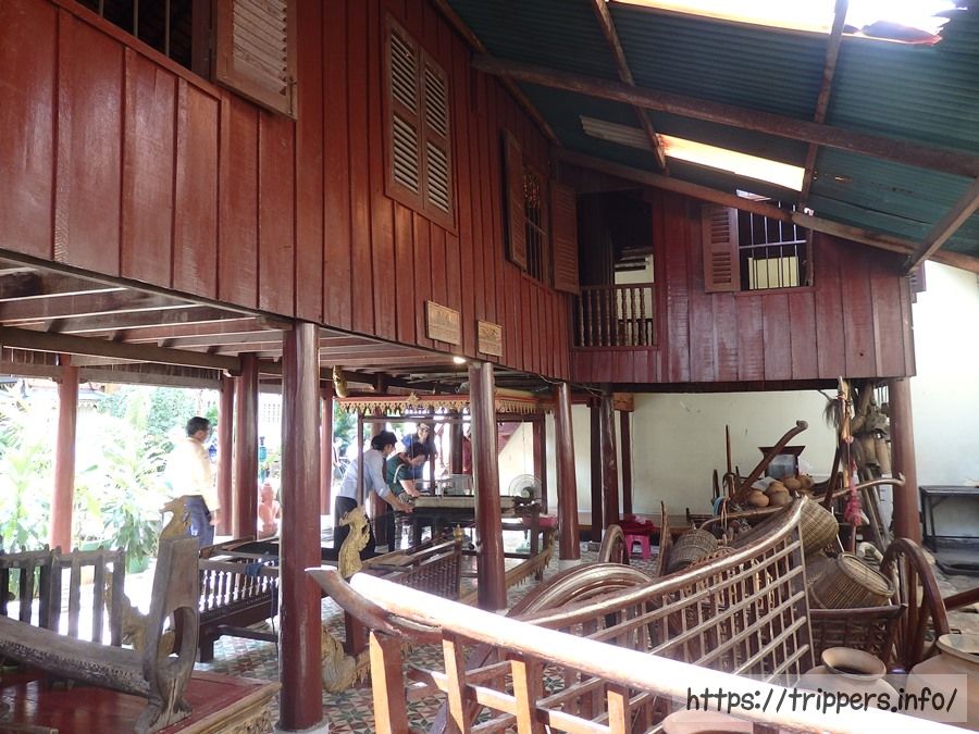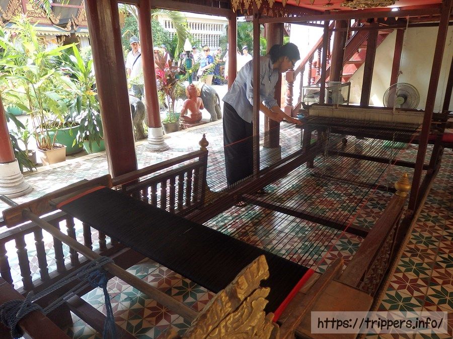 クメール伝統ハウスはカンボジアでは一般的な高床式住居の展示とシルク製品の販売があります。セントラルマーケットなどの市場で売られているシルク製品はほとんど偽物ですが、王宮の敷地内で売られているものは本物です。