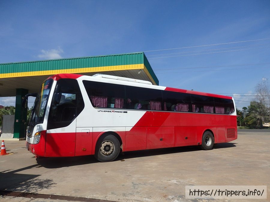 今回の旅行会社はA to C Travelという日本人が経営する会社で、所有するバスはこれ1台で、それ以外はレンタルバスだとの事です。カンボジアでのガイドは国家資格で公務員になるそうです。つまり公務員が旅行会社へ出向してる形になるのでしょうか。