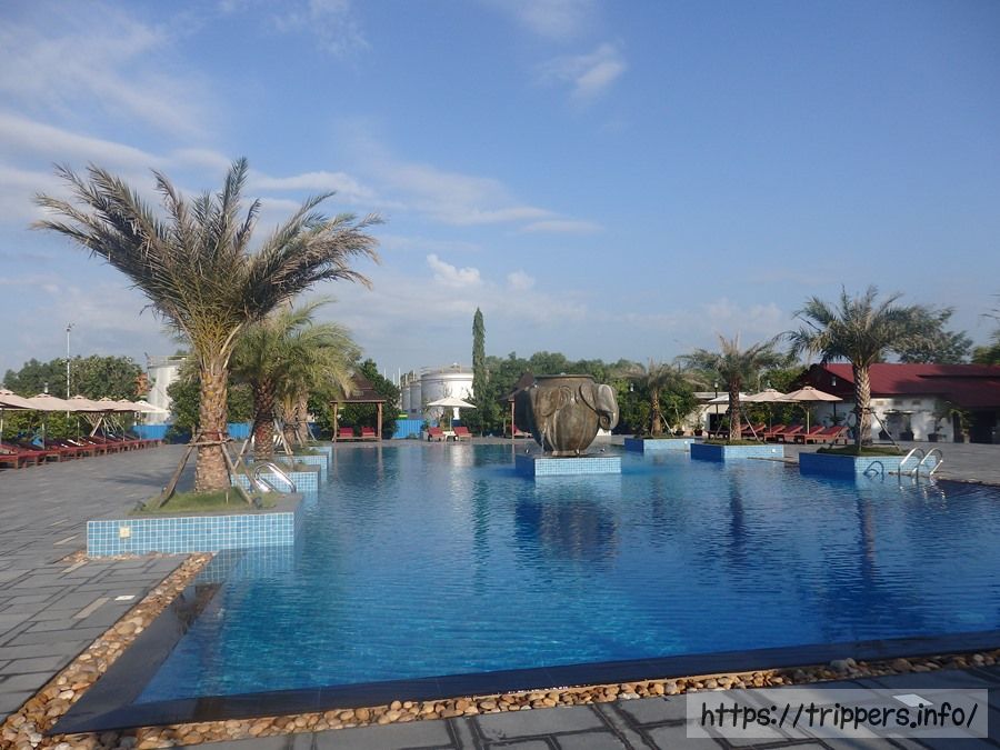 ホテルには大きいプール付きです。今日と明日はホテルで休憩時間が1時間程あるため、プールで泳いでも良いかもしれません。しかし、今日の休憩時間はカンボジア戦争博物館へ行く予定です。