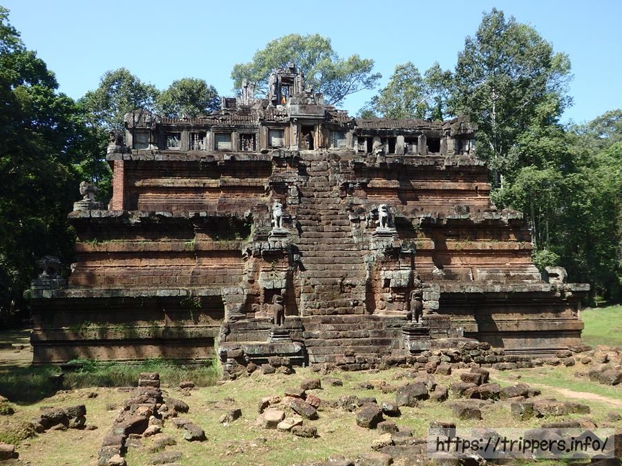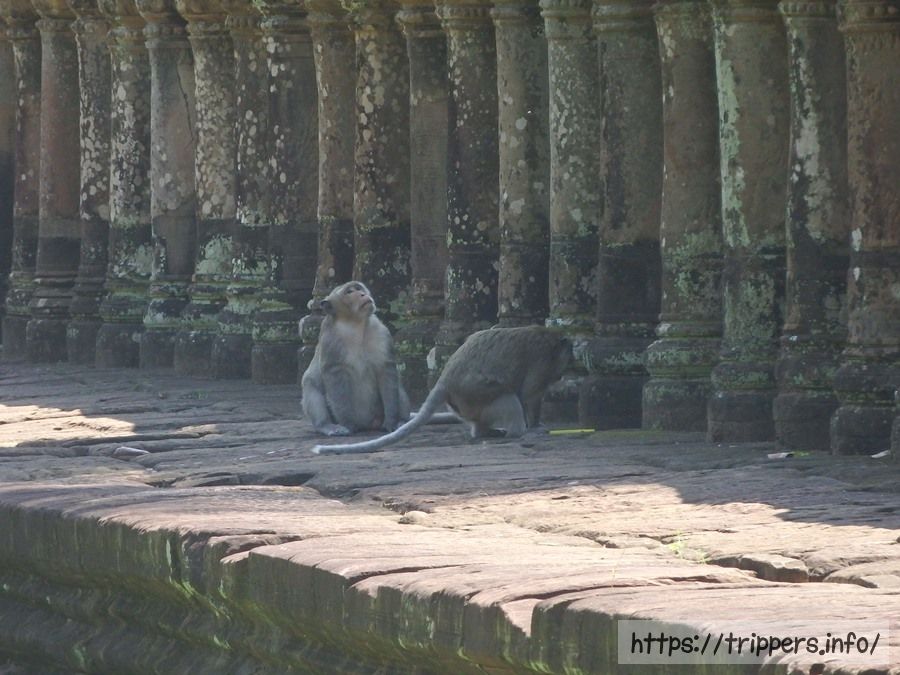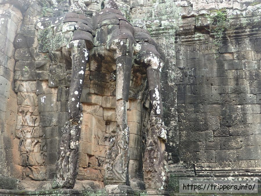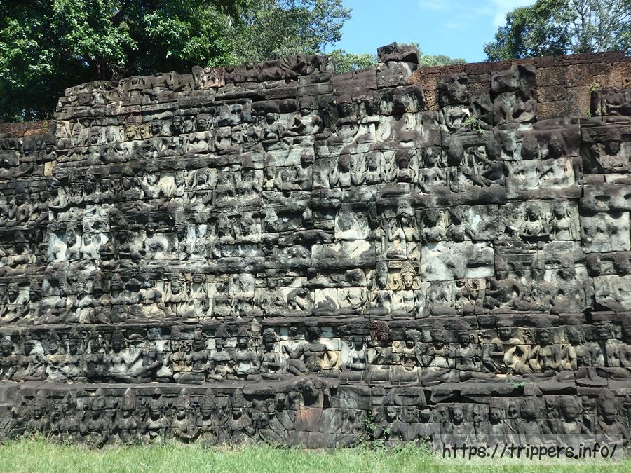 ライ王のテラスです。ライ王とはテラスの上に12世紀末の建立当時から置かれていた塑像が時を経て変色したり苔むした様がまるでハンセン病(癩:ライ)のようであるという事と、アンコール王朝ヤショヴァルマン1世がハンセン病であったということが重なってハンセン病の王(ライ王)という名前由来となりました。