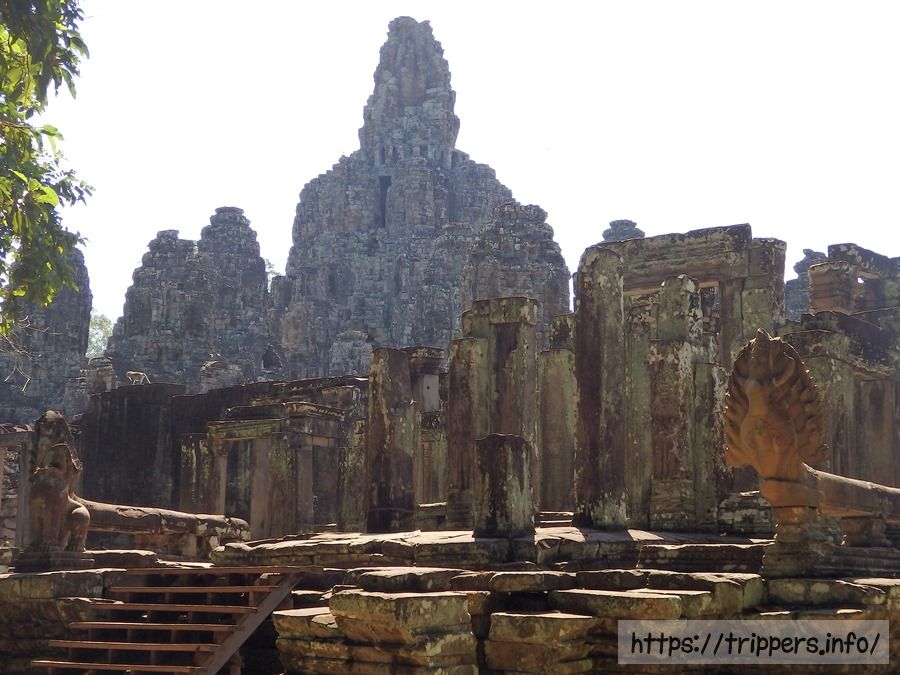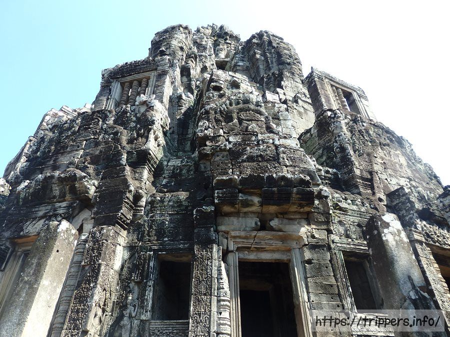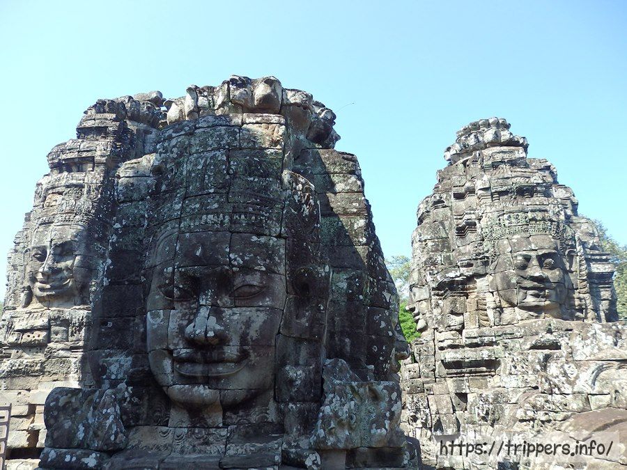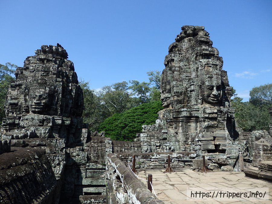ここからは観世音菩薩の四面塔が良く見えます。どこか微笑みのある顔がバイヨン寺院の特徴です。