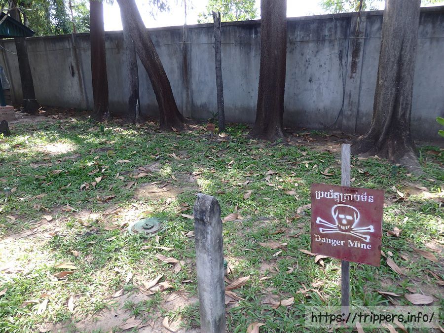 地雷がある事を知らせる看板と地雷が再現されています。現在カンボジアは地雷の心配をする事なく観光できていますが、昨日訪れたサンボープレイクック遺跡など観光できるようになるまでに数々の地雷が撤去されました。今回の旅でこの国に地雷が数多くあった事実を何度も知る事になります。