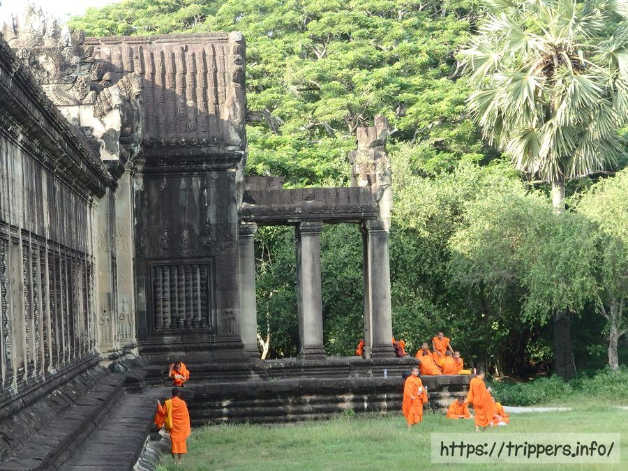 周壁の端っこに僧侶が固まっていました。寺院の石材と僧侶の袈裟の色が異国情緒を感じさせました。