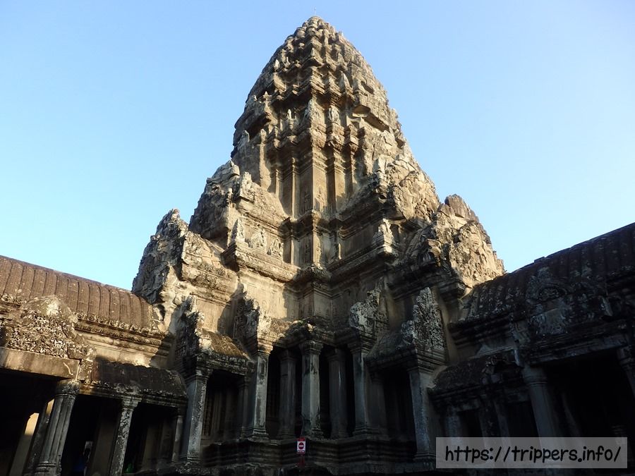 急な階段を登って行きます。第三回廊は第二回廊より16m高く回廊の四隅には4つの副祠堂があり、中央には高さ65mの中央祠堂がそびえ立っています。当時、王や身分の高い人しか中に入る事が出来ませんでした。