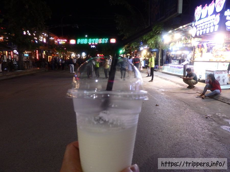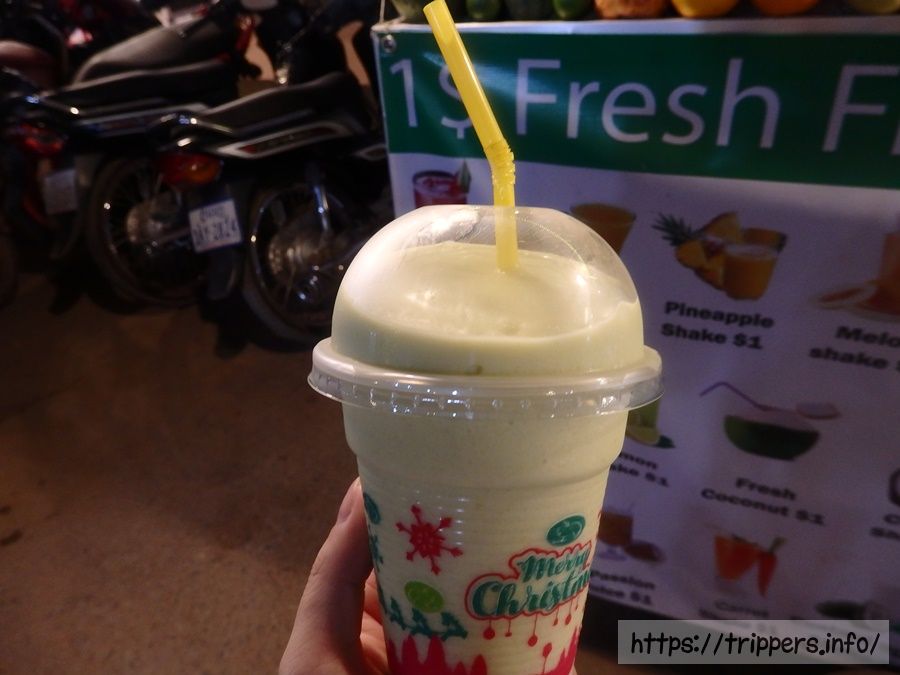 トゥクトゥクに乗る前に、今度は1ドルのシェイク屋で2杯目を購入します。お酒飲めないなら、シェイクで雰囲気味わいたい気持ちがありました。