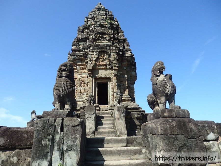 中央祠堂の手前の階段脇にはシンハ(獅子)が配置されています。