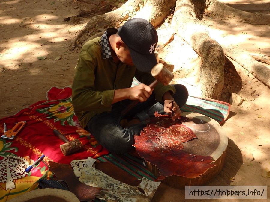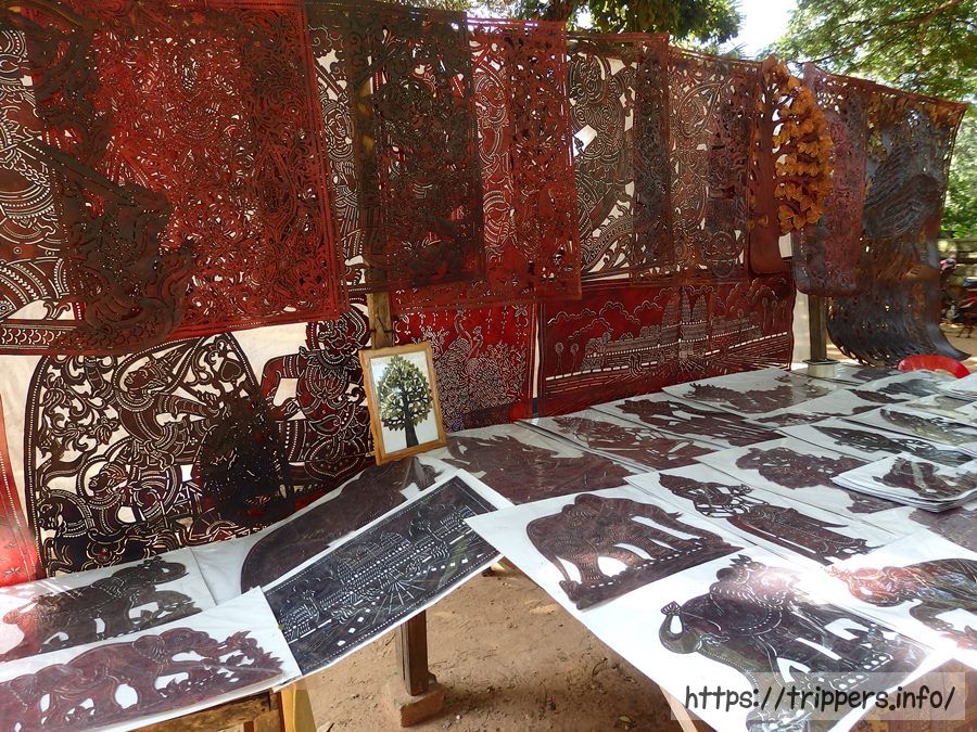 バコンの入口でカンボジア土産が売っていました。スバエクと呼ばれるカンボジアの影絵芝居で使用され、牛皮です。