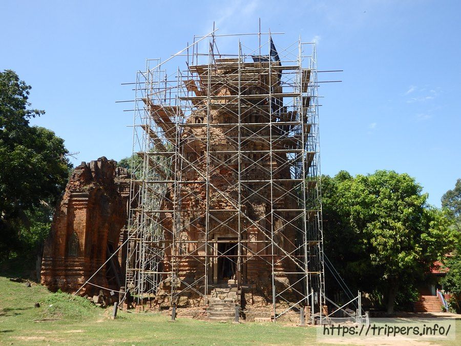 金剛力士像の彫像です。修復作業が全て終わると、どれくらい新品ピカピカの遺跡になるのでしょうか。ロレイは創建当時は大貯水池の中の小島に建設されましたが、現在は池は涸れています。