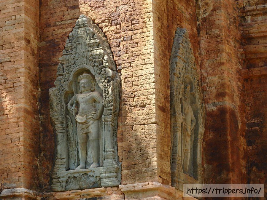 祠堂は砂岩の同じ基壇上にあって、3基の塔を各2列に配置した合計6基の煉瓦の塔により構成されています。