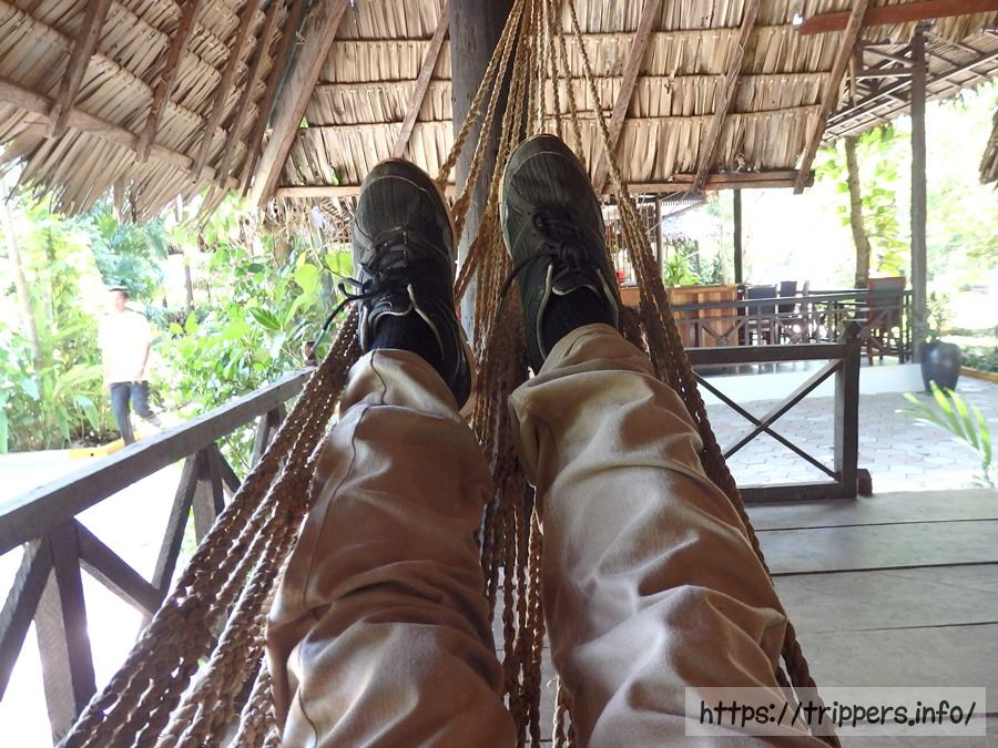 地元レストランStoeng Trorcheak Restaurantに到着しました。昼食時間までハンモックで休憩します。このレストランは年末やお盆の時は現地の客で満杯になるそうです。