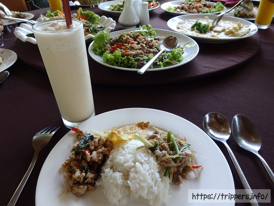 観光はこれで終わりになり、プノンペン国際空港へ向かう長いバス移動になります。途中でプリー・プラス湖の側のレストラン(Prey Pros Restaurant)でトイレ休憩です。