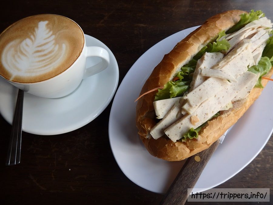 朝になり、朝食はホテルの系列店であるMixok Innで摂りました。カオ・チー・パーテとコーヒーです。カオ・チー・パーテはフランスパンで作ったサンドイッチの事で、東南アジアでは一般的です。ベトナムだとバインミーって呼ばれますね。ナイフ付なのがちょっとおしゃれでした。