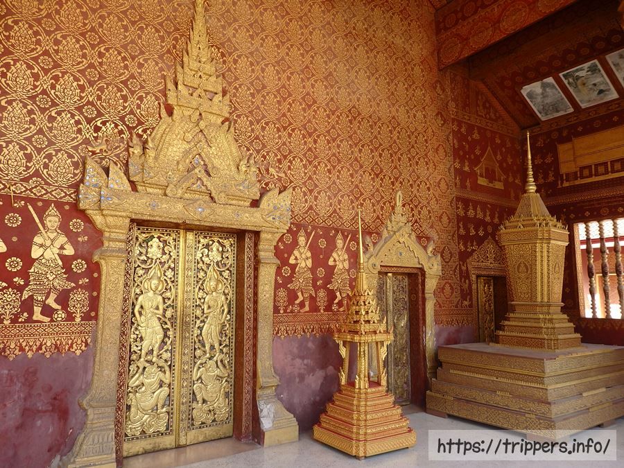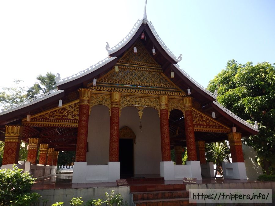 こちらは1560年建立のワット・シェントーンです。入場料が20,000キープ必要ですが、ルアンパバーンの寺院の中で一番見所のある寺院だと思います。手前の建物はレッド・チャペルと呼ばれています。