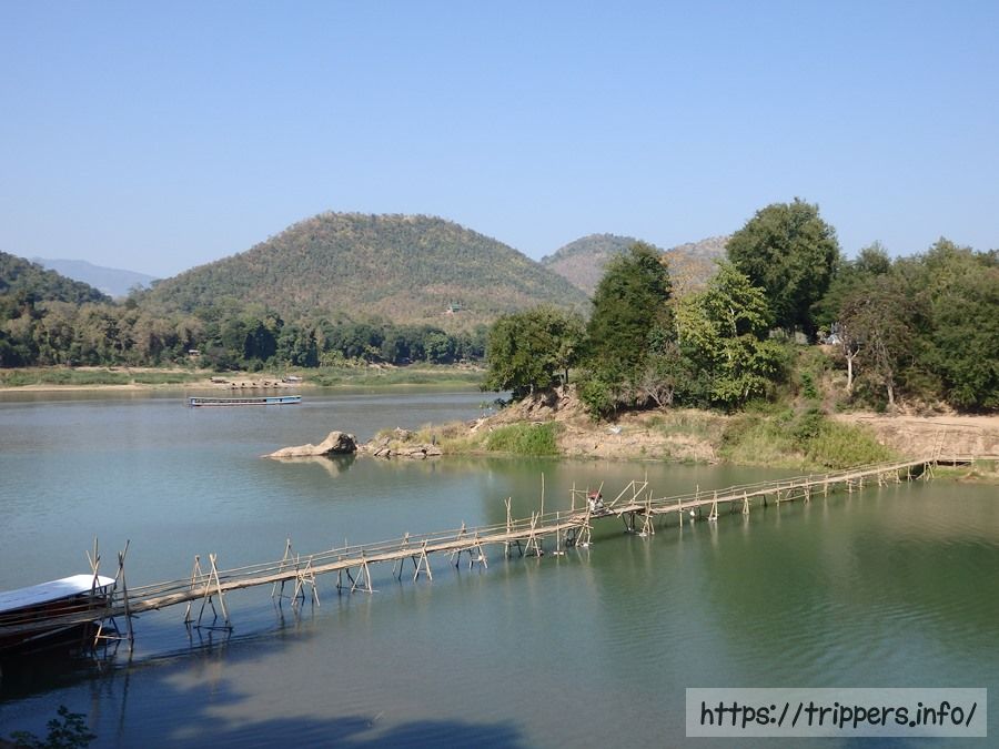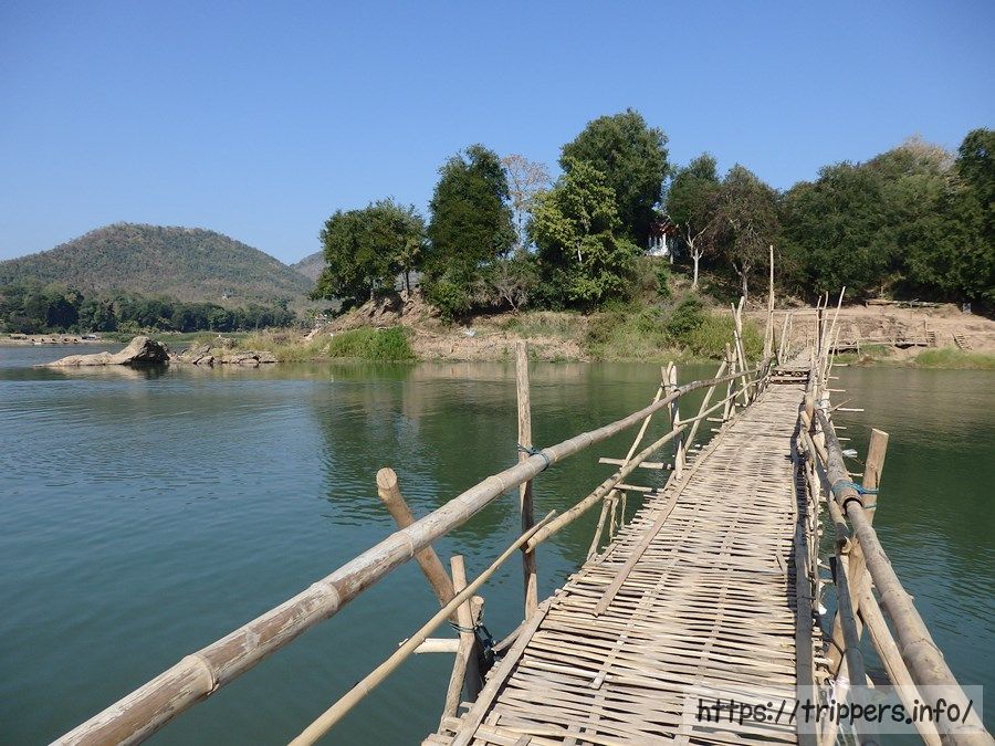 お目当てはこの竹橋です。往復の通行料が10,000キープかかりますが、日本ではお目に掛かれない竹橋であり、記念に渡ってみても楽しいと思います。またナムカーン川に別の竹橋があります。