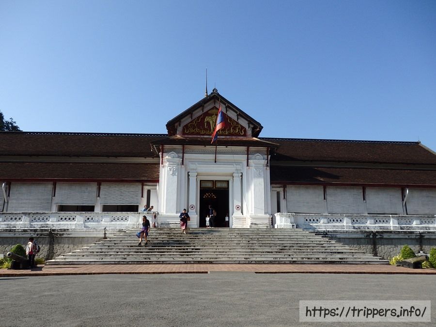 こちらが博物館の本部です。入場料が30,000キープで正門側の売り場でチケットを買えます。写真撮影禁止で荷物はロッカーに預ける必要があります。中は王室そのものの豪華さがありました。また各国からの贈答品が展示され、日本から贈られた物もありました。