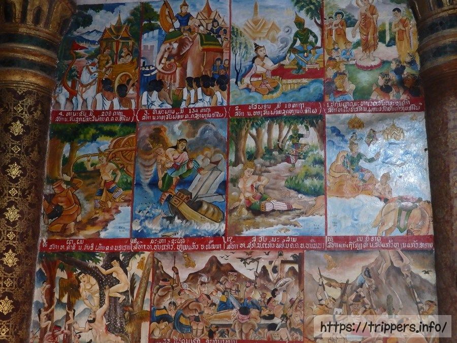 壁面には仏教の教えが絵画で描かれています。