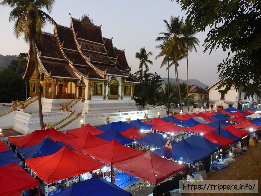 丘を降りると既にナイトマーケットが開かれてました。博物館のパバーン像安置祠の屋根がとても豪華なのがここから見て分かります。