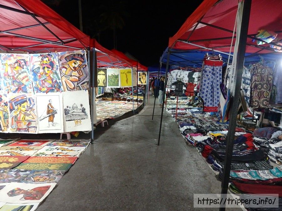 伝統舞踊を見終わったらナイトマーケットで買い物と食事です。工芸品や手芸品は寺院や夜市で売っています。