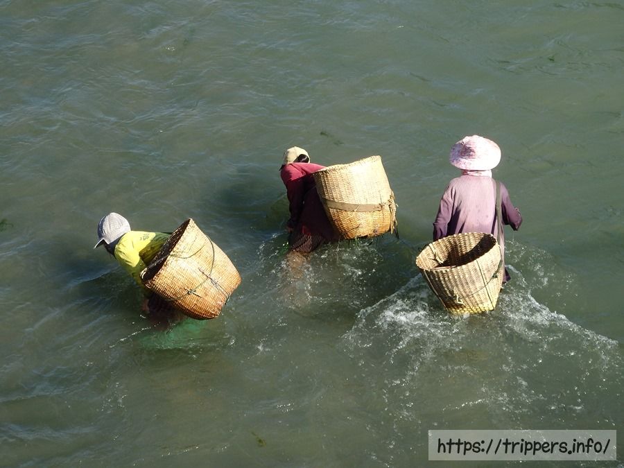 ナムソン川では川海苔なのか川に流れている海藻のようなものを採取している人がいました。