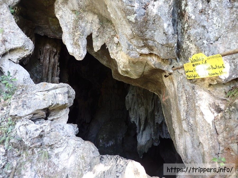 光が届かず足元や壁面が真っ暗な場所がありますが、スマホのライトがあれば大丈夫です。タム・プーカム洞窟の階段の入口でヘッドライトをレンタルする事も出来ます。