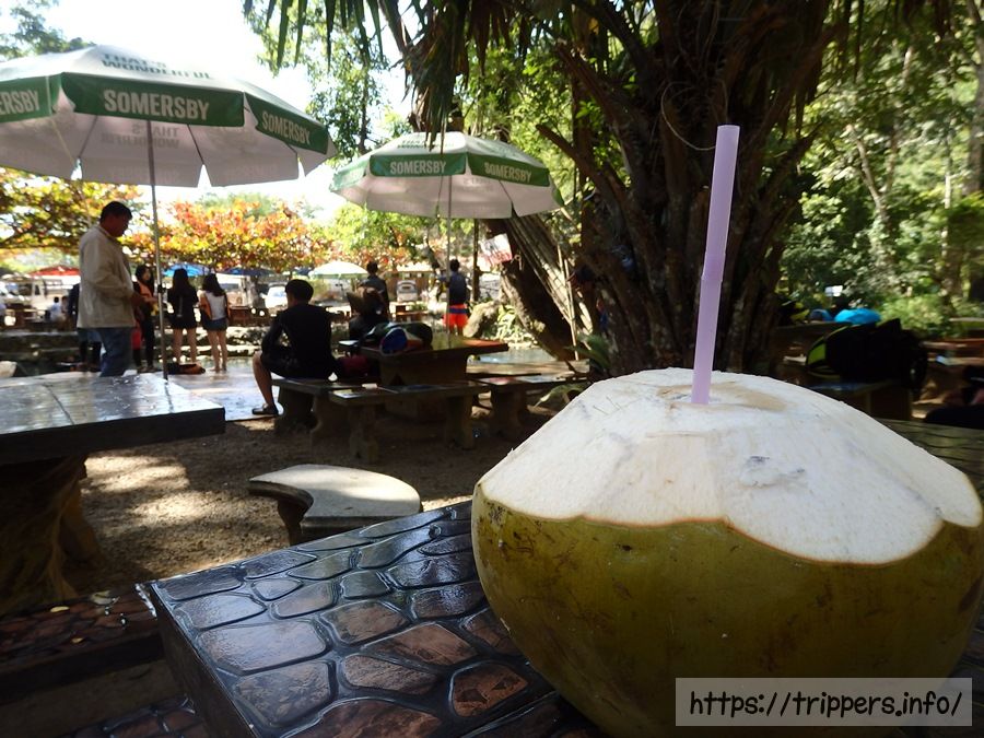 エメラルドの池まで戻ったらココナッツウォーターで休憩です。ココナッツに当たり外れがあり、当たると甘くて美味しいですが、外れると雑味が凄くて不味いです。