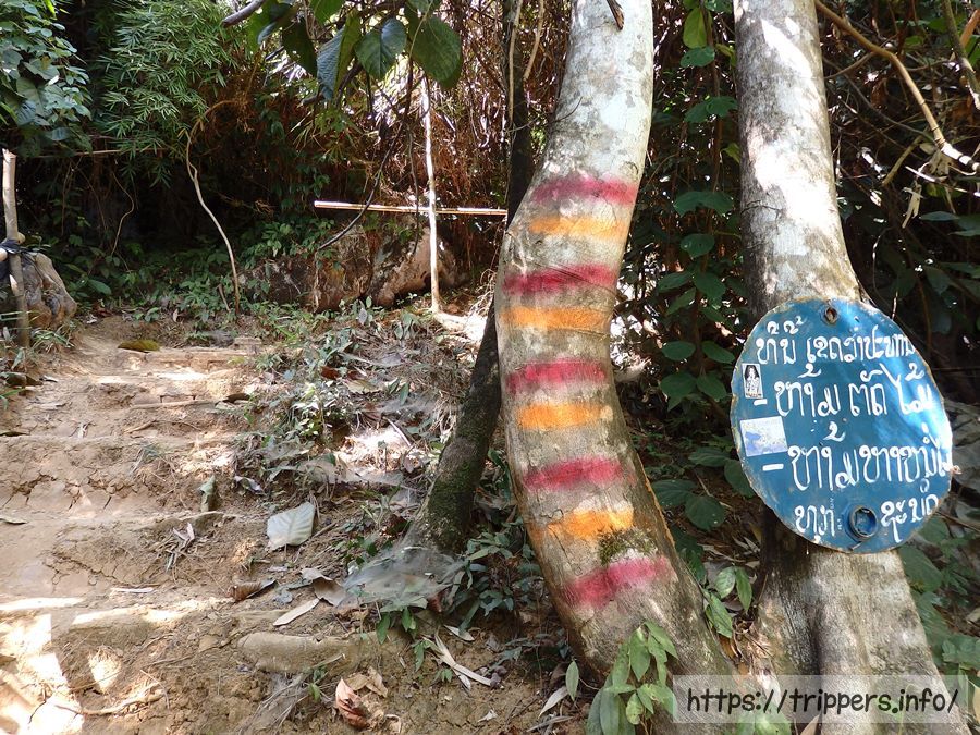 Nam Xay Viewpoint入口に到着しました。入場料を払って登山開始です。山頂までは標準タイムは30分です。ここはブルーラグーンとは異なりアジア人は見かけず、欧米人が多いです。