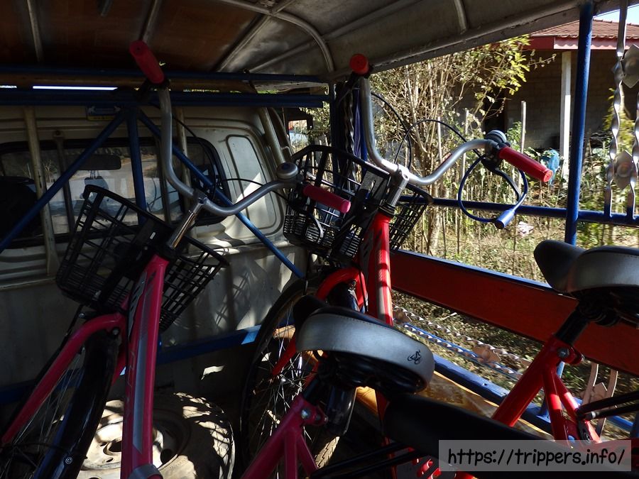 Nam Xay Viewpoint入口まで下山するとトゥクトゥクがいました。50,000キープで街まで送ると営業されたので、30,000キープでPha Ngern Viewpoint入口に連れてってもらう事にしました。距離的には20,000キープぐらいが妥当かもしれません。自転車込みで運べるとは想像しませんでした。