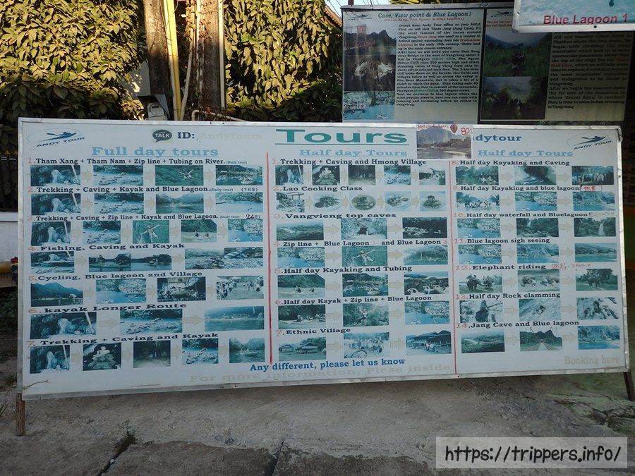 バンビエンの魅力が分かる場所へ出かけようと思います。2つの山頂(Nam Xay ViewpointとPha Ngern Viewpoint)と2つの鍾乳洞(タム・チャン洞窟とタム・プーカム洞窟)へ行きます。