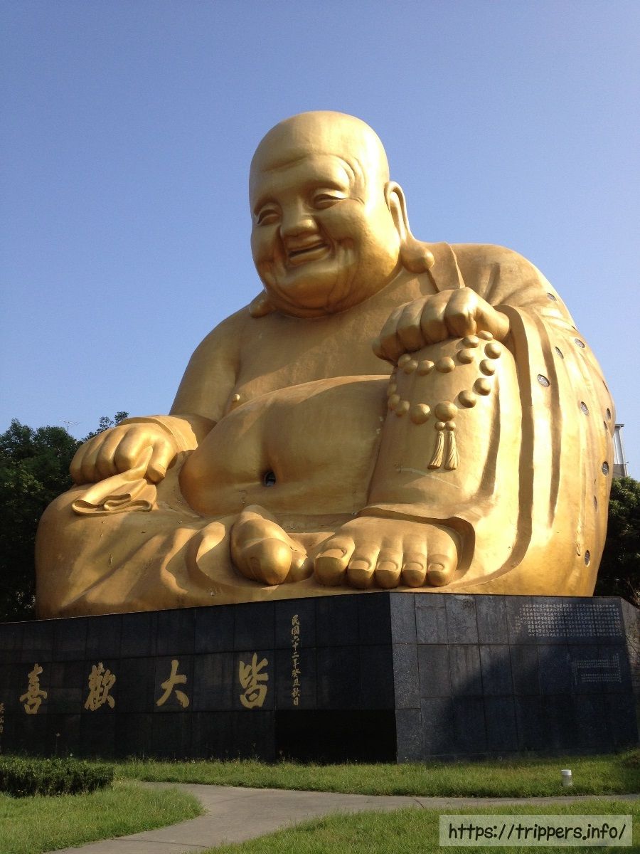 ホテルを出発するとまずは宝覚寺に向かいました。この巨大な金色の大仏は弥勒大仏像(七福神の布袋)だということです。