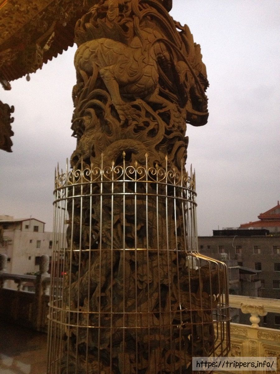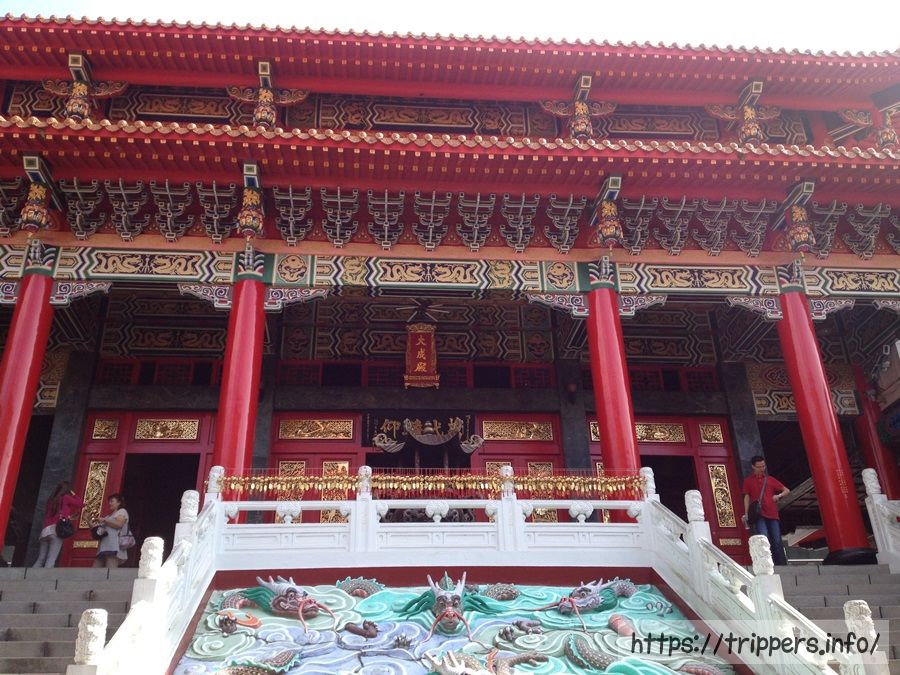 月潭の湖畔北部にある文武廟。画像の龍の彫刻と高さ8mある大きな獅子の石像が印象的でした。