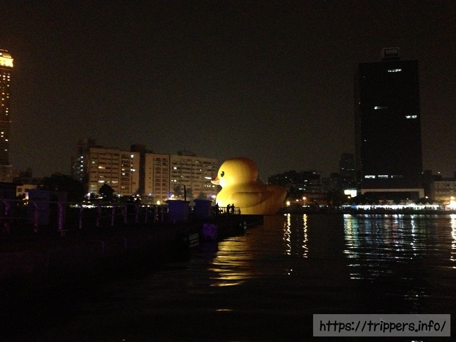 黄色小鴨と呼ばれているアヒル。香港のビクトリア湾に現れ、注目を集めたオランダ人芸術家の作品なんだとか。