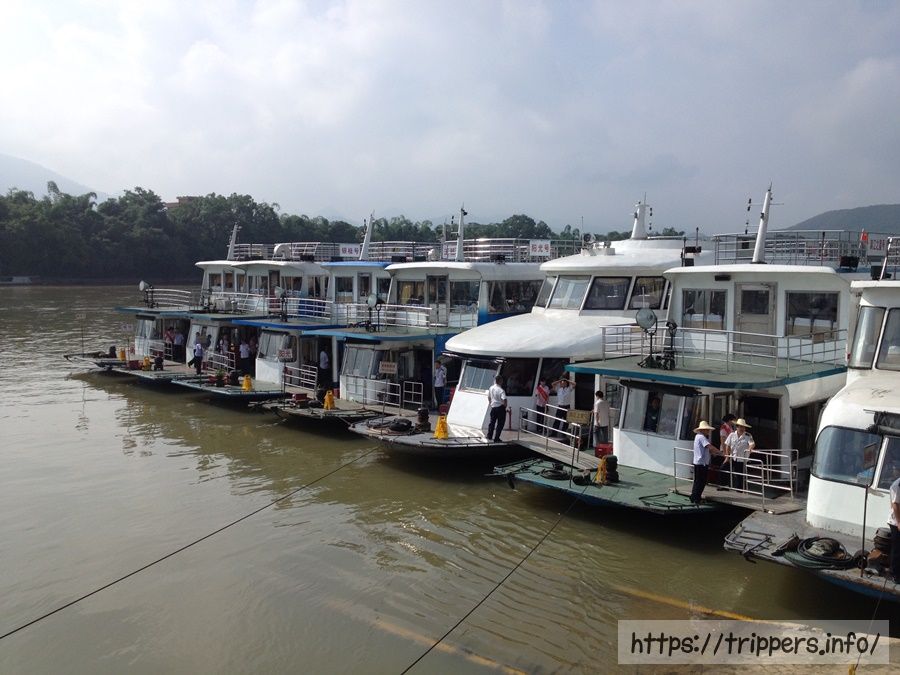 ツアーバスでやってきたのは外国人専用の船乗り場(竹江码头)です。ここから乗船します。昼食は船内でバイキングになっています。