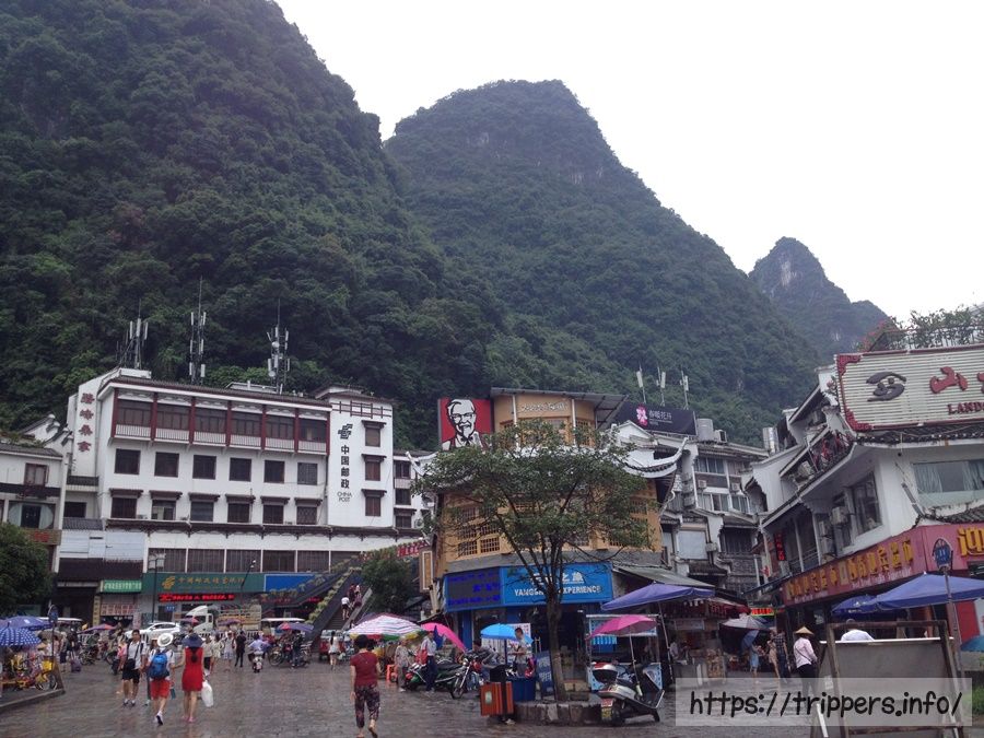 西街の自由散策になりました。桂林と同じカルスト地形の中に街がある景色ですが、陽朔は桂林の田舎バージョンと言ったイメージでしょうか。