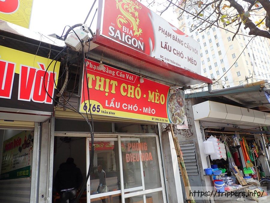 タクシーで向かったのは、こちらの犬肉と猫肉が食べられるお店(Pham Bang)です。お店に着いたものの、タクシーの降り方が分かりませんでした。到着したのに、アプリは乗車中の表示であり、会計ボタンがありません。実は、以前Grabアプリを使っていた時はクレジットカード登録をしておらず、タクシーを利用する度に現金払いでした。今回はクレジットカード登録をしており、目的地に到着したら、そのままタクシーを降りれば良いだけでした。