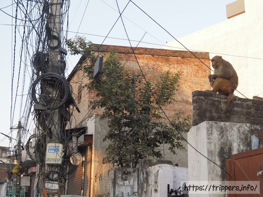 野生の猿も街中にいます。日本の街中に出没する猿は狂暴だったりしますが、インドの猿は人間と共存しているのか、襲ってくる気配はありませんでした。