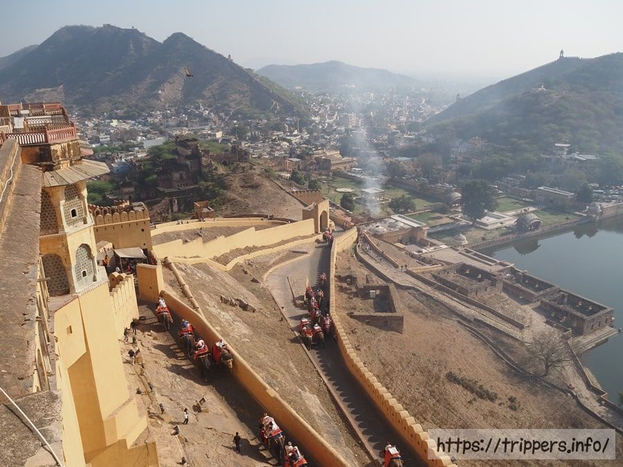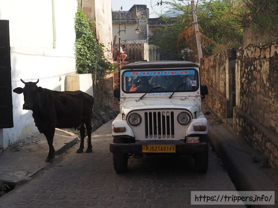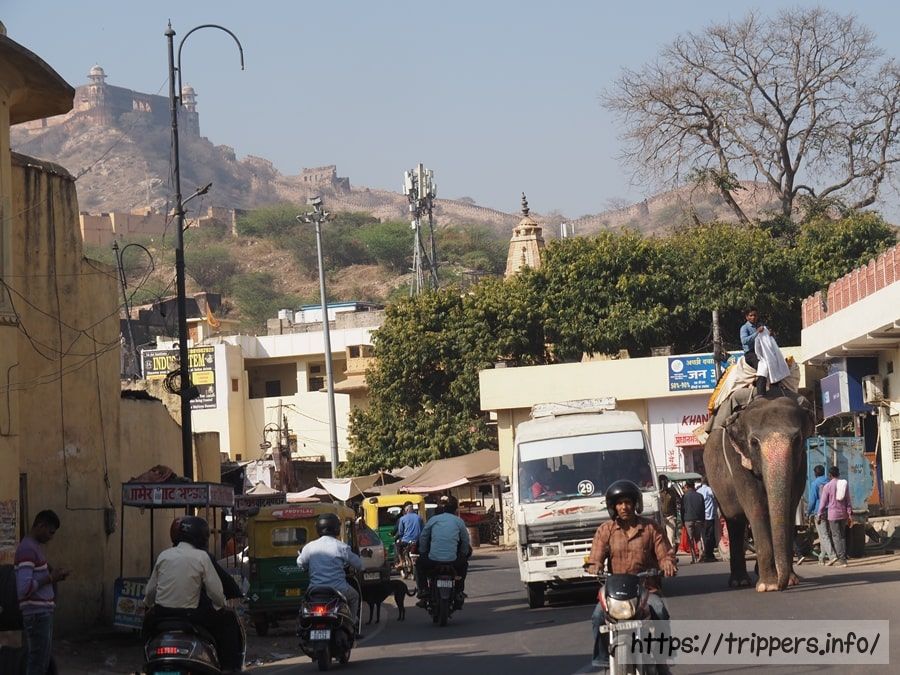 ツアー車のミニバンでアンベール城まで行くことは出来ないため、途中でジープに乗り換えて向かいます。ツアーによっては象のタクシーに乗って城の入口へ行くことも出来るようです。