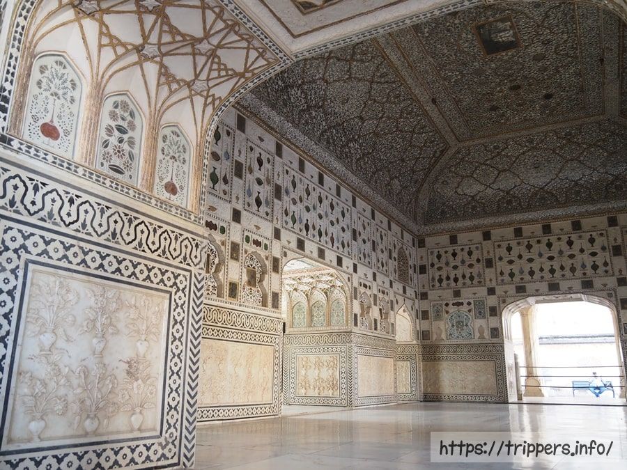 ディーワーニー・カース(貴賓謁見殿)にある勝利の間です。貴賓謁見の間として用いられ、ガラス等を埋め込んで装飾された天上や壁が豪華でした。