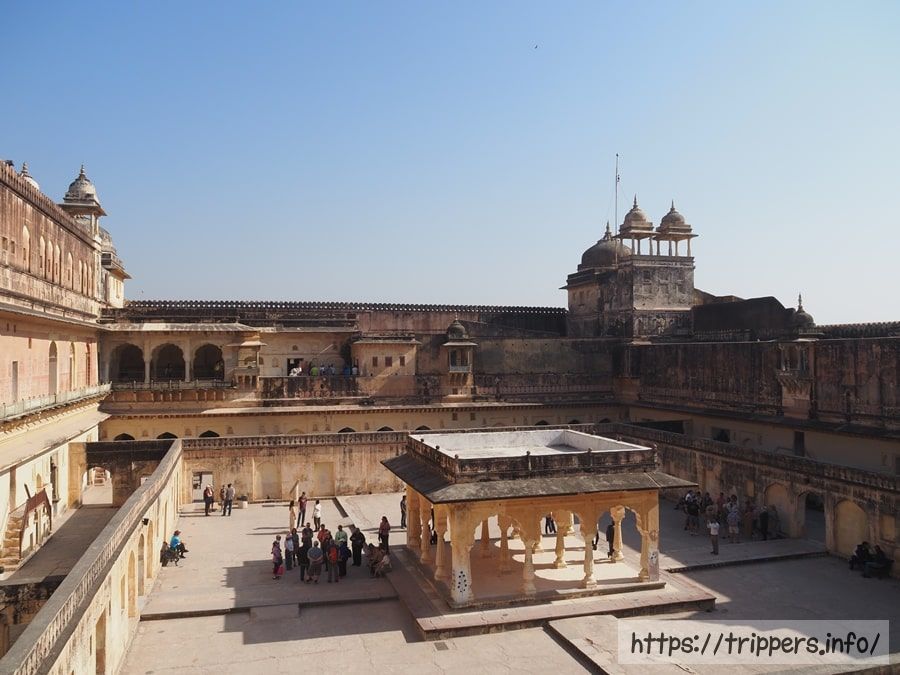 ザナーナ・マハル(ハーレム)です。中央には踊り子の舞台があります。王様(マハラジャ)の10人以上の側室が暮らしており、王様は他の側室に気付かれることなく、目的の側室に会いに行ける設計になっています。