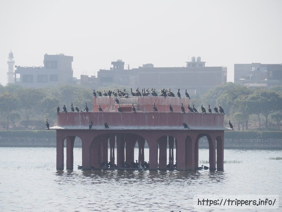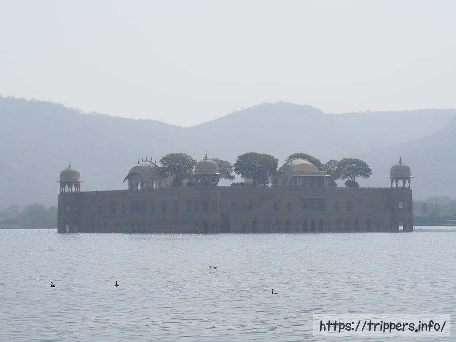 次に向かったのはマン・サガー湖にあるジャルマハル(水の宮殿)です。5階建ての宮殿で、雨季には4階まで水没します。王族の夏の保養地として18世紀に建てられました。中に立ち入ることは出来ません。 水の宮殿と呼ばれていますが、乾季には湖が干上がることもあります。