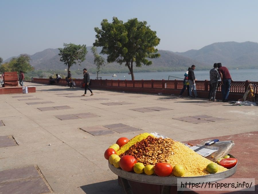 次の観光地へ向かいます。路上でよく見かけたストリートフードとしてパニプリがあります。揚げた大量の生地(プリ)が山積みになっていて、食べたい気持ちとお腹を壊さないか心配な気持ちで揺れました。ちなみに前回の海外旅行は食中毒でやらかしています。