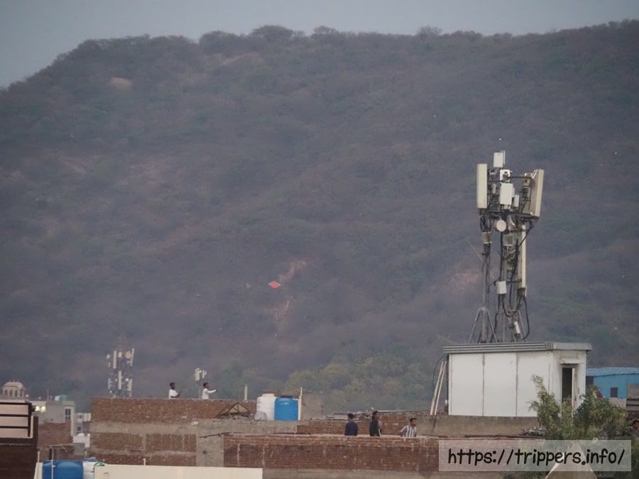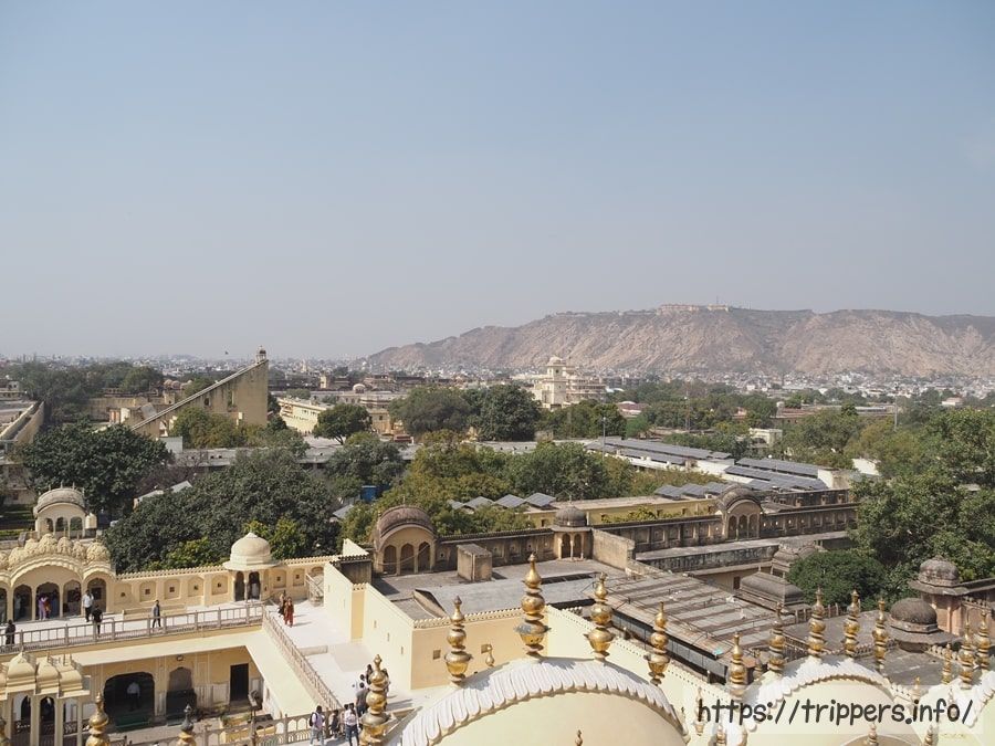 手前には先程訪れたジャンタル・マンタル、奥の山にはナルガール要塞が見えます。