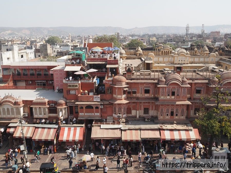 頂上の窓から街を見下ろしてみます。ジャイプールのピンク・シティと呼ばれる場所にあるだけあって、ピンク色の景観です。