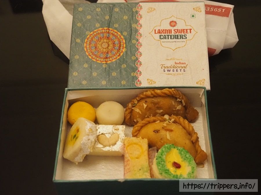 ホテルに戻ったらこの日のツアーは終了になります。歩いてインド菓子店へ向かいます。Laxmi Sweet Caterersと言う名前のチェーン店がありました。