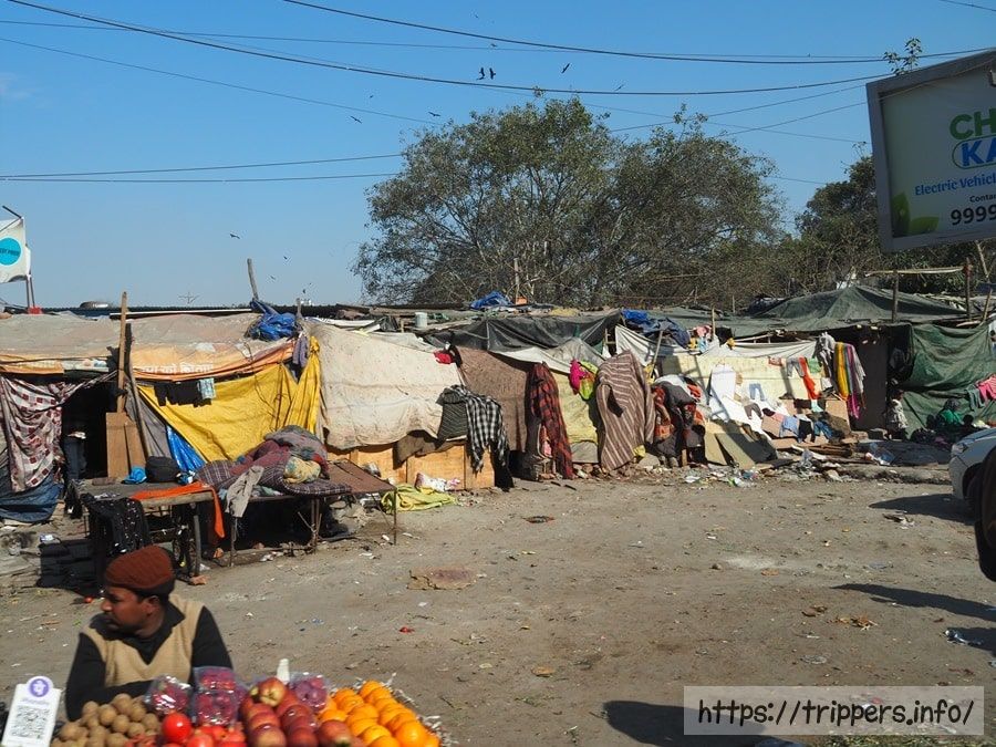 デリーに到着したら茶葉専門店に向かいます。お店の側にスラムがありました。