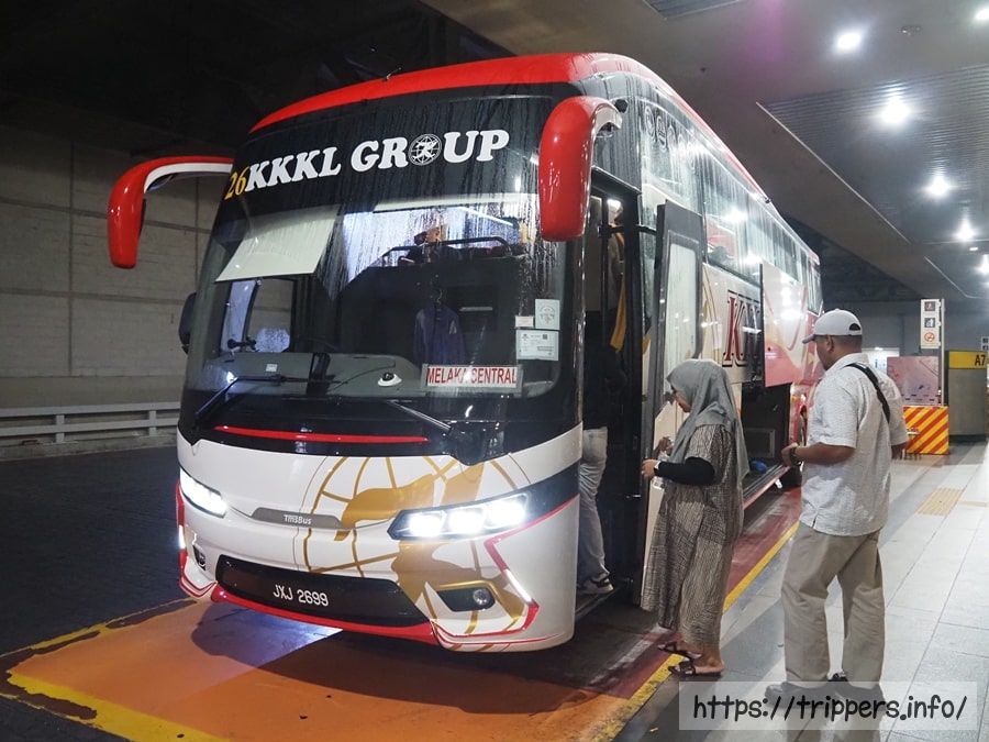 こちらが今回乗車するバスです。マレーシアでバスを予約するなら、Easybookと言うサイトがお勧めです。今までは12Goと言うサイトでベトナム旅行等の長距離バスを予約していました。しかしマラッカ発着のバスは12Goには存在せず、Easybookで予約しています。他のバスは使い慣れた12Goで予約したのですが、Easybookを経由していることが分かりました。Easybookで直予約した方が安いと思います。
